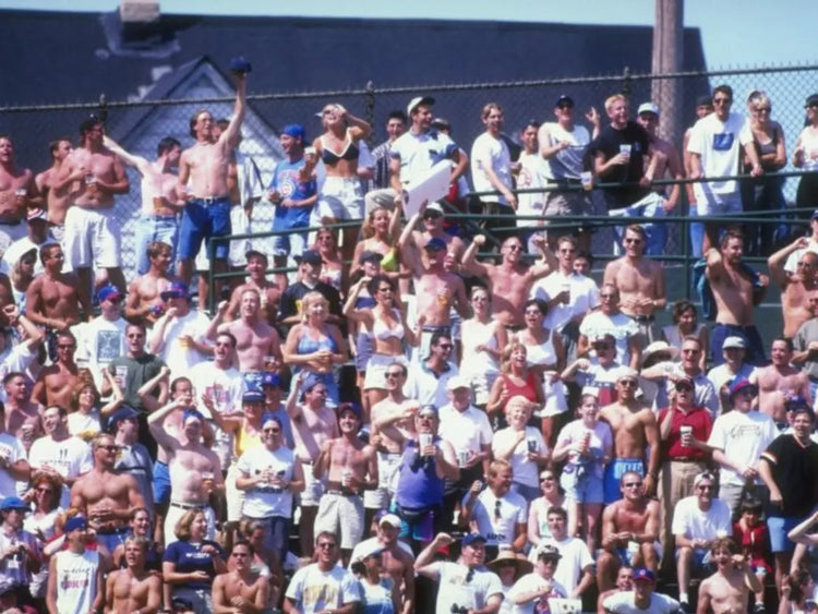 Hard Hats Required In The Bleachers Framed Canvas